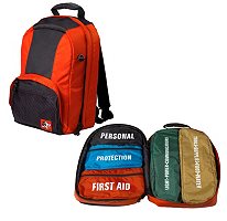 It is organized into 5 clearly marked and color coded bags including: light/power/communications, first aid, protection, tools/food/water and personal items.